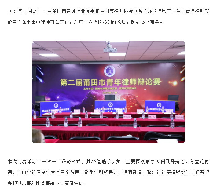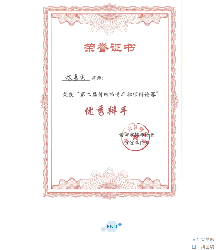 信实林嘉宾实习律师荣获“第二届莆田市青年律师辩论赛”优秀辩手荣誉称号|信实动态·莆田分所