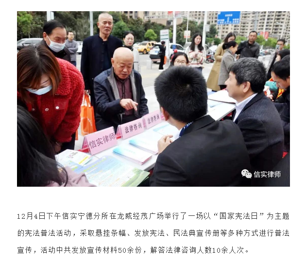 信实宁德分所开展“12.4”国家宪法日宣传活动|信实动态·宁德分所