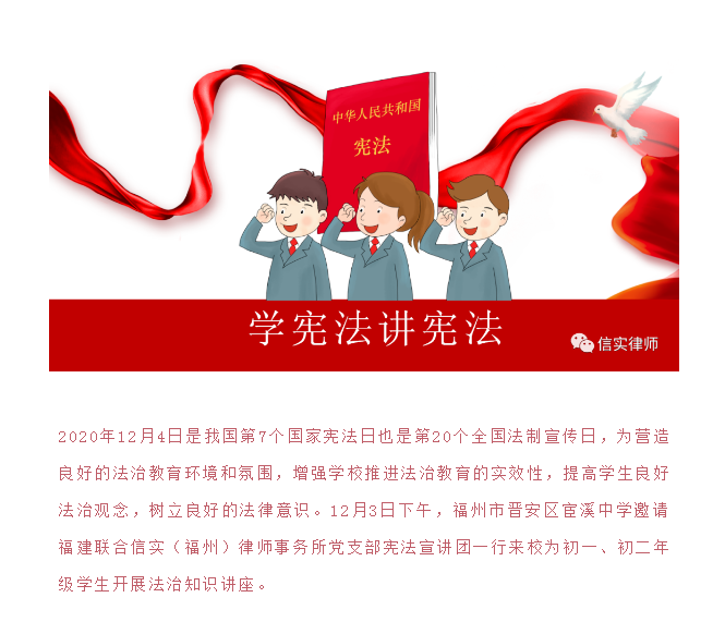 第七个国家宪法日——信实福州分所党支部与晋安区宦溪中学开展“宪法进课堂”法制宣传教育活动|信实动态·福州分所