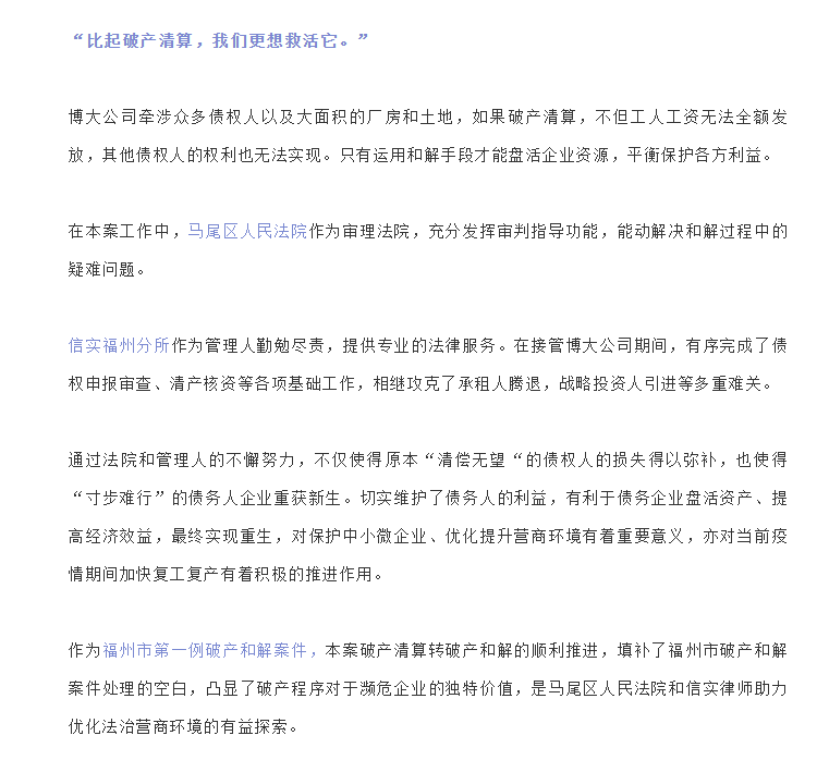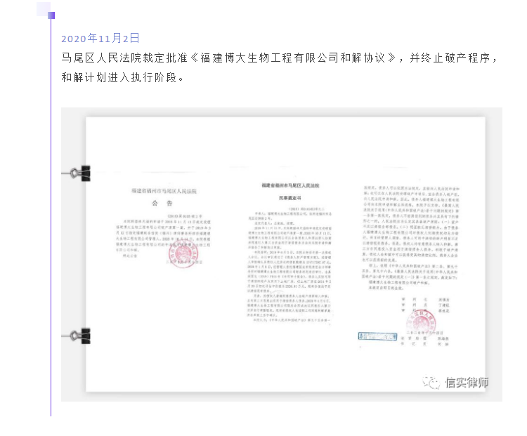 “化茧为蝶,重获新生”——信实律师助力福州首起破产和解案件获批|信实动态·福州分所
