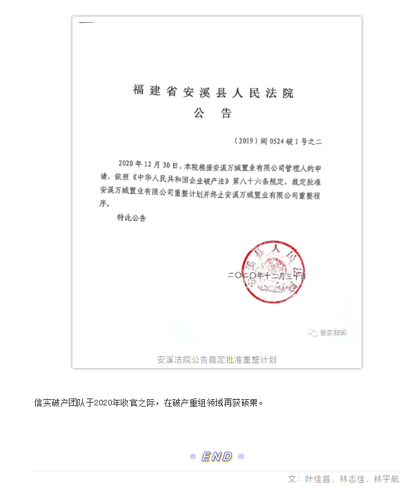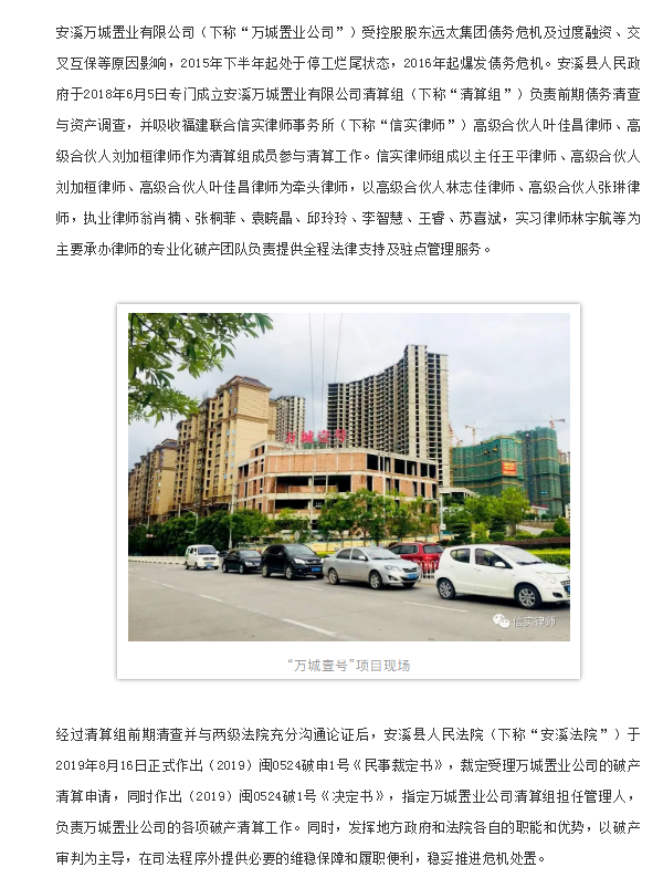 府院联动 涅槃重生——信实律师助力泉州市首家房地产开发企业重整成功|信实动态·重整与清算法律事务部