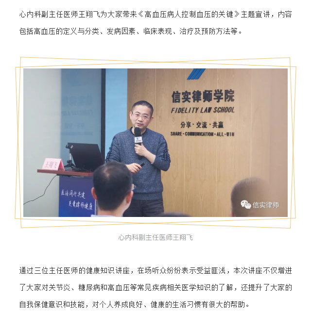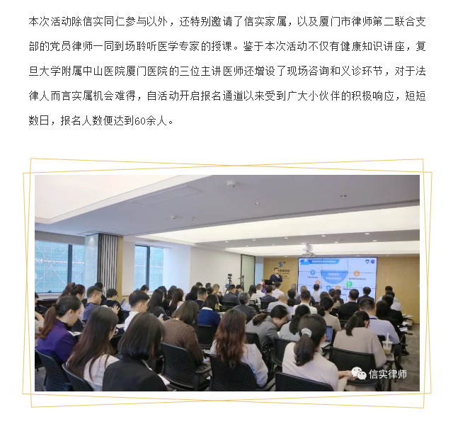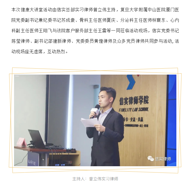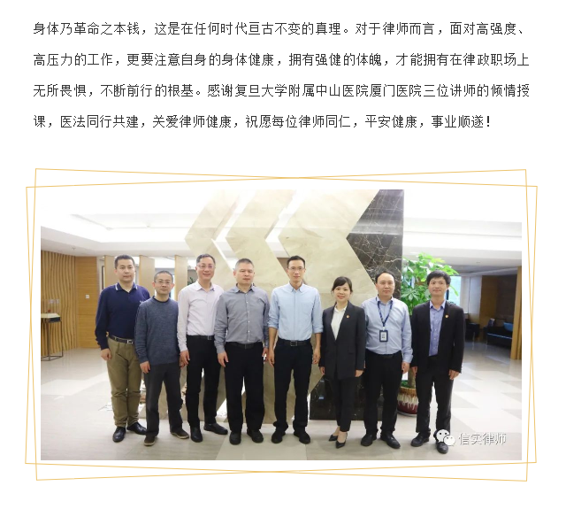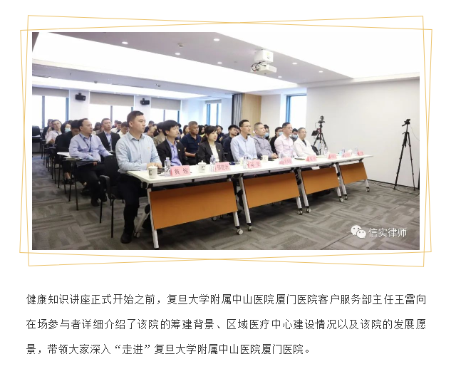 信实党委携手复旦中山厦门医院党委成功举办“医法同行共建,关爱律师健康”健康大讲堂活动