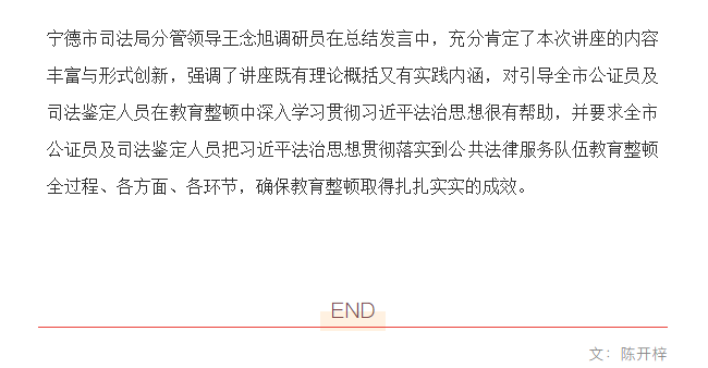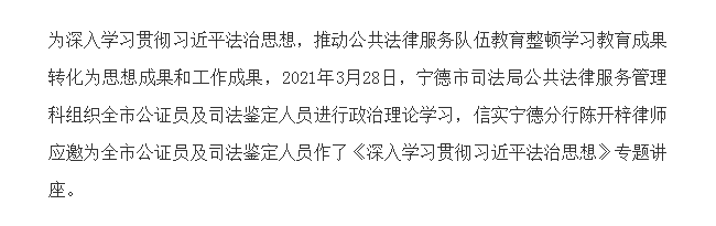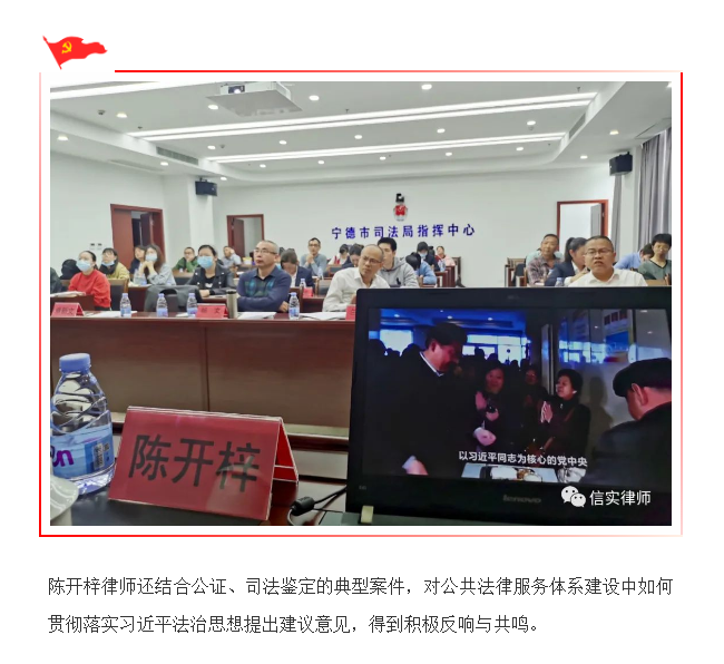 陈开梓律师应邀为宁德市公证员及司法鉴定人员作《深入学习贯彻习近平法治思想》专题讲座