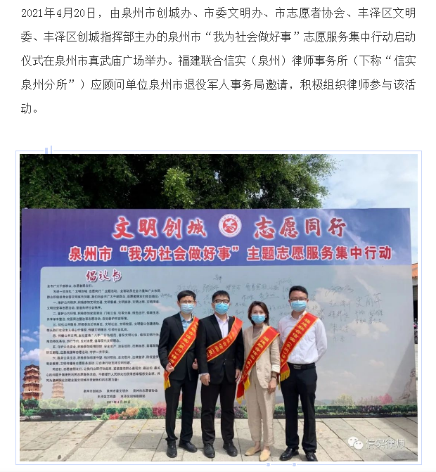 信实泉州分所积极参与泉州市“我为社会做好事”志愿服务集中行动