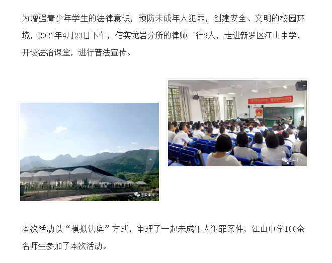 福建联合信实(龙岩)律师事务所送法进校园