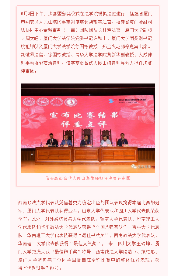 第十二届“联合信实杯”全国大学生模拟法庭辩论赛圆满落幕