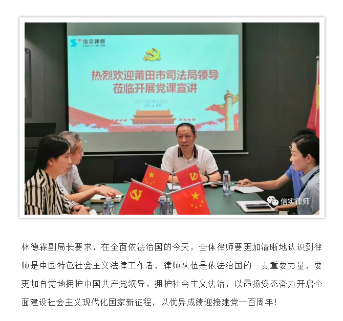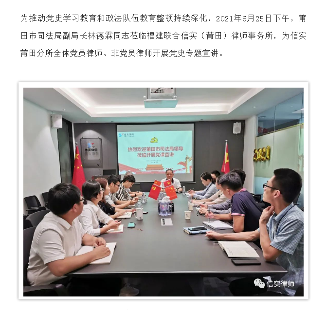 莆田市司法局领导莅临信实莆田分所开展党史专题宣讲
