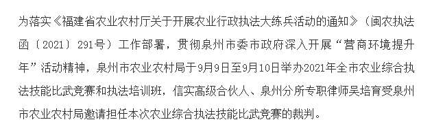 吴培育律师应邀担任全省首场农业综合执法技能竞赛比武活动裁判