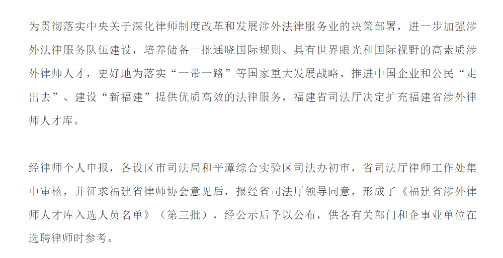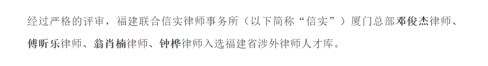 信实四名律师入选福建省涉外律师人才库