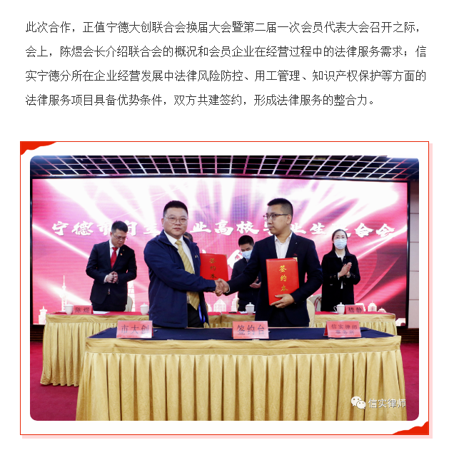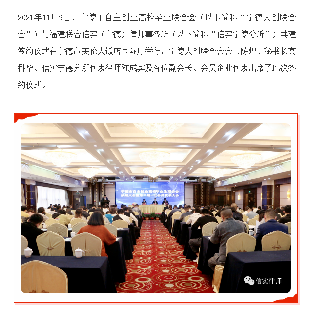 为民办实事——信实宁德分所与宁德市自主创业高校毕业联合会签订结对共建协议