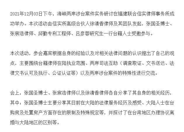 海峡两岸涉台案件实务研讨交流