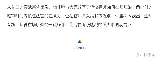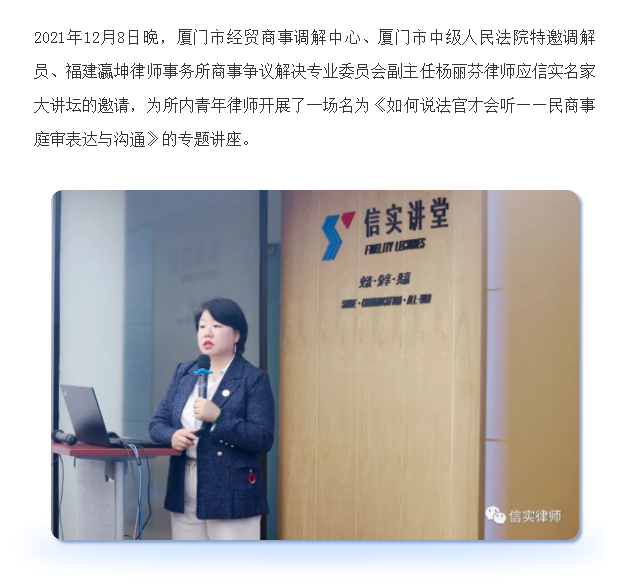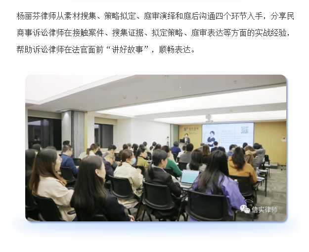 信实讲堂邀请杨丽芬律师开展《如何说法官才肯听》专题讲座