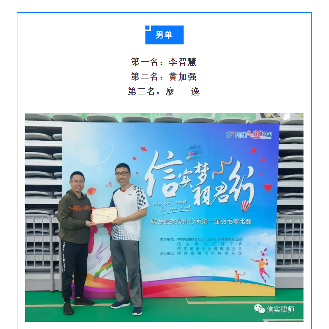 信实梦 羽君行——信实泉州第一届羽毛球比赛圆满落幕