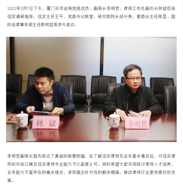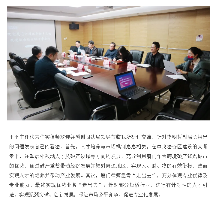 厦门市司法局领导莅临福建联合信实律师事务所调研指导