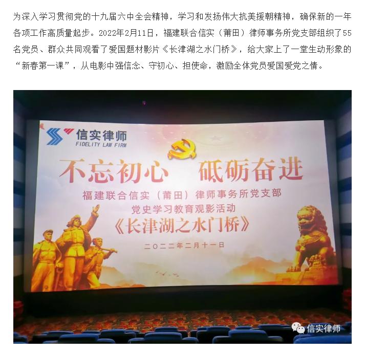 信实莆田分所党支部组织开展观影《长津湖之水门桥》主题党日活动