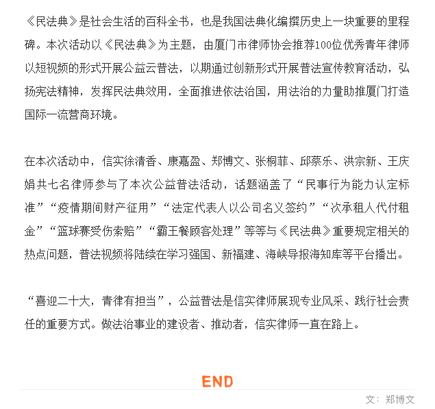 “喜迎二十大 青律有担当”,信实律师参与“百名青年律师云普法”活动