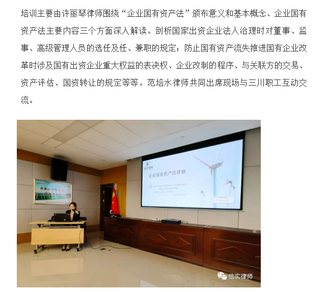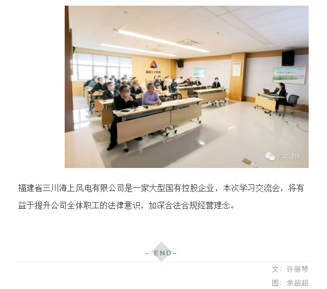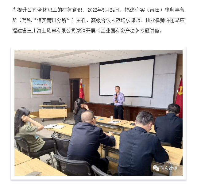 信实莆田分所范培水、许丽琴律师应邀为福建省三川海上风电有限公司开展《企业国有资产法》专题讲座