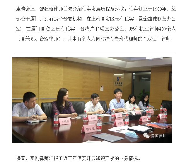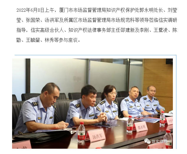 厦门市市场监督管理局知识产权保护处莅临福建信实律师事务所调研指导