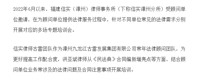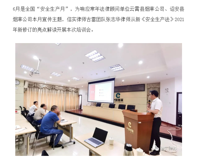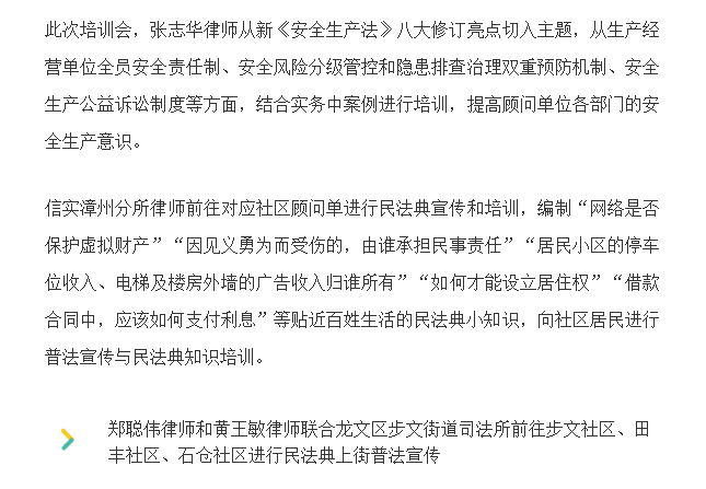 信实律师漳州分所受邀到顾问单位开展《民法典》《安全生产法》的专题培训会