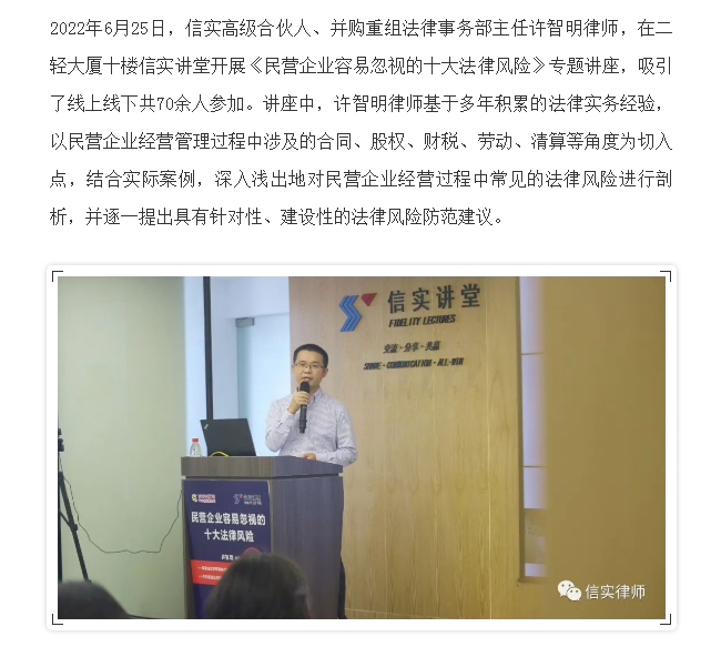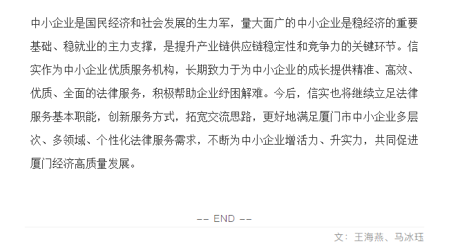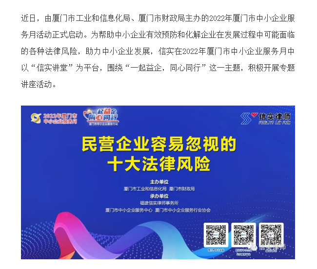 信实律师助力2022年厦门市中小企业服务月活动
