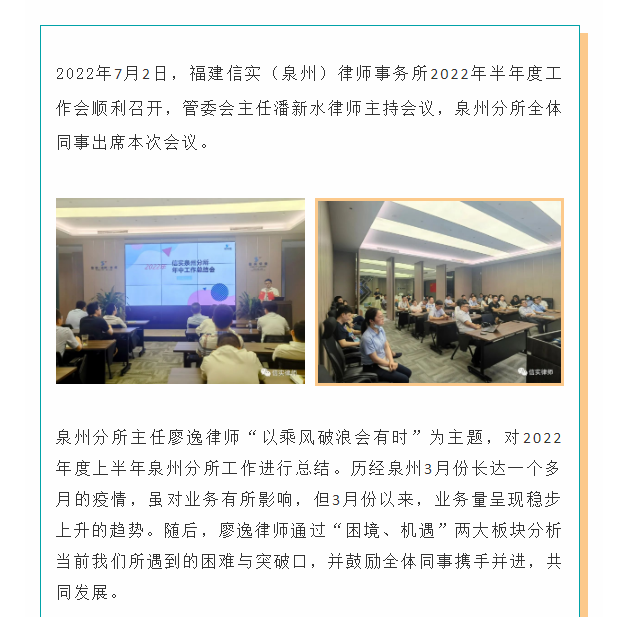 乘风破浪会有时——2022年泉州分所半年度工作总结会