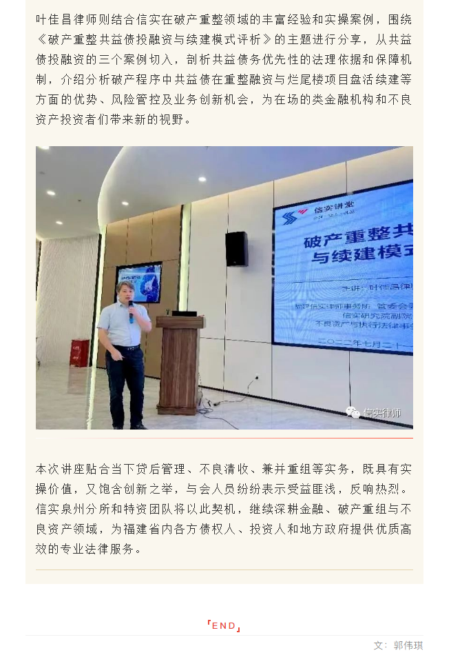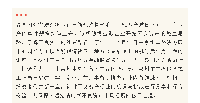 信实特资团队应泉州市地方金融监督管理局邀请开展不良资产处置与共益债投资专题讲座