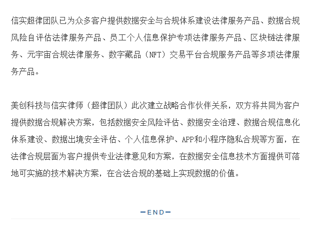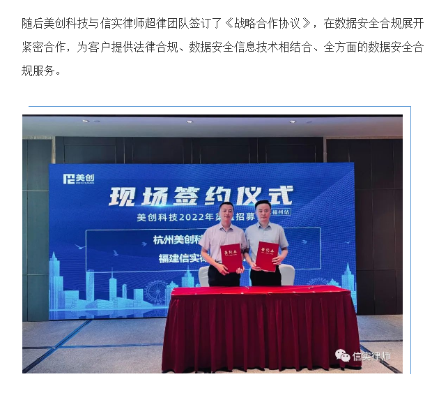 信实律师超律团队与美创科技达成数据合规领域战略合作
