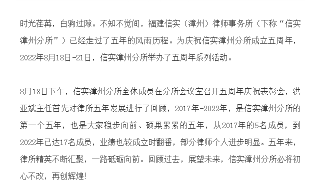 「五年朝夕 感谢有你」福建信实(漳州)律师事务所五周岁啦!