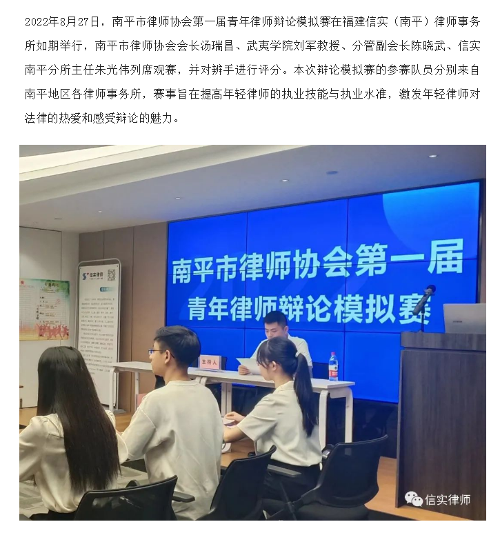 南平市律师协会第一届青年律师辩论模拟赛于信实南平分所圆满举办!