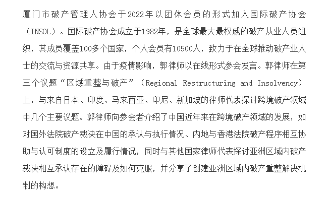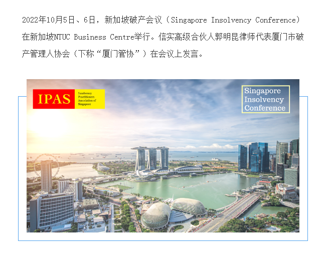 信实高级合伙人郭明昆律师代表厦门市破产管理人协会在新加坡破产会议上