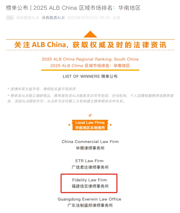首页 > 信实简介 > 第三方认证 > ALB中国华南地区十五佳本地律所